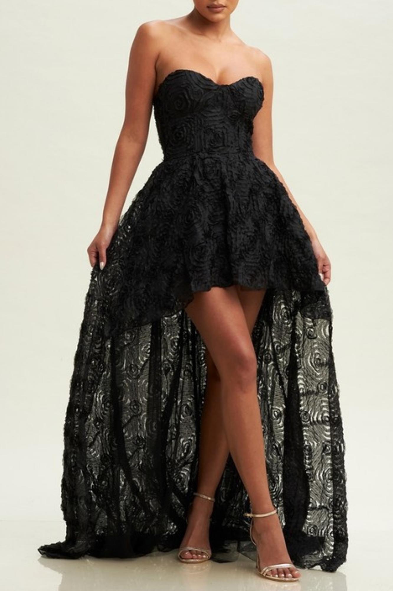 3D ROSE HI LO TULLE DRESS