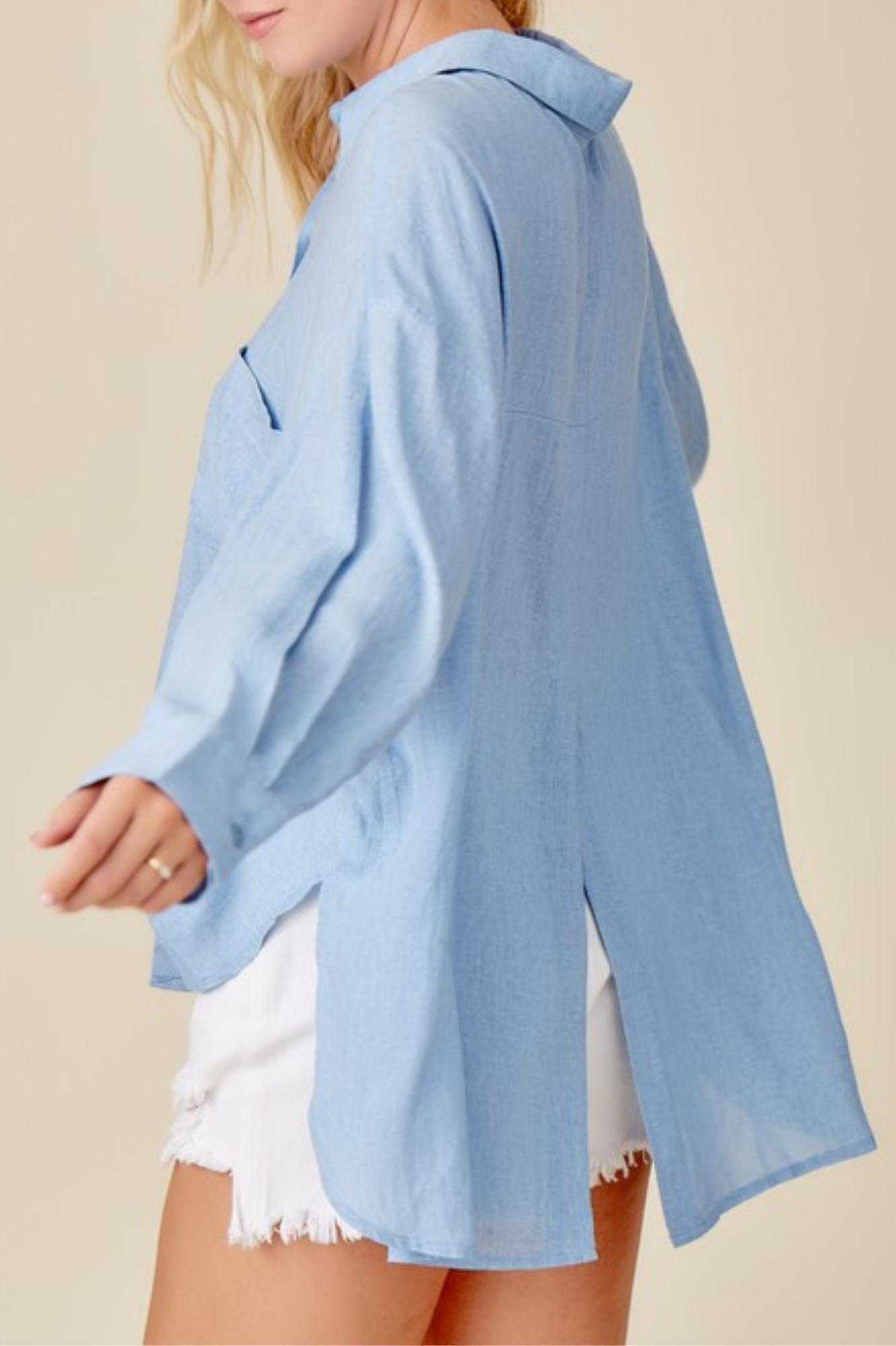 BLUE LOOSE FIT BUTTON DOWN SHIRTS