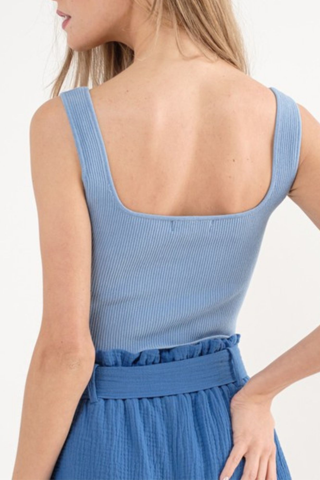 BLUE SCULPT KNIT NOTCH RIB TANK