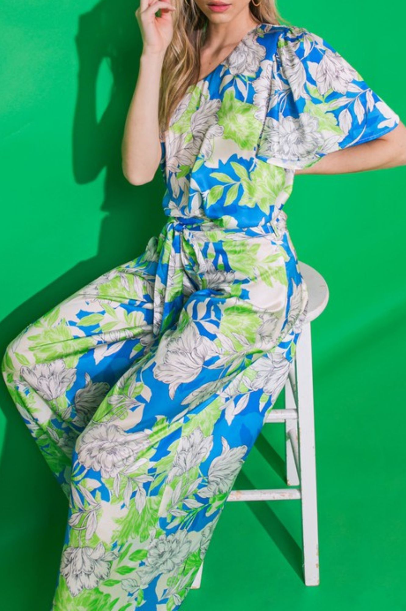 BLUE WOVEN ONE SHOULDER PANTS SET
