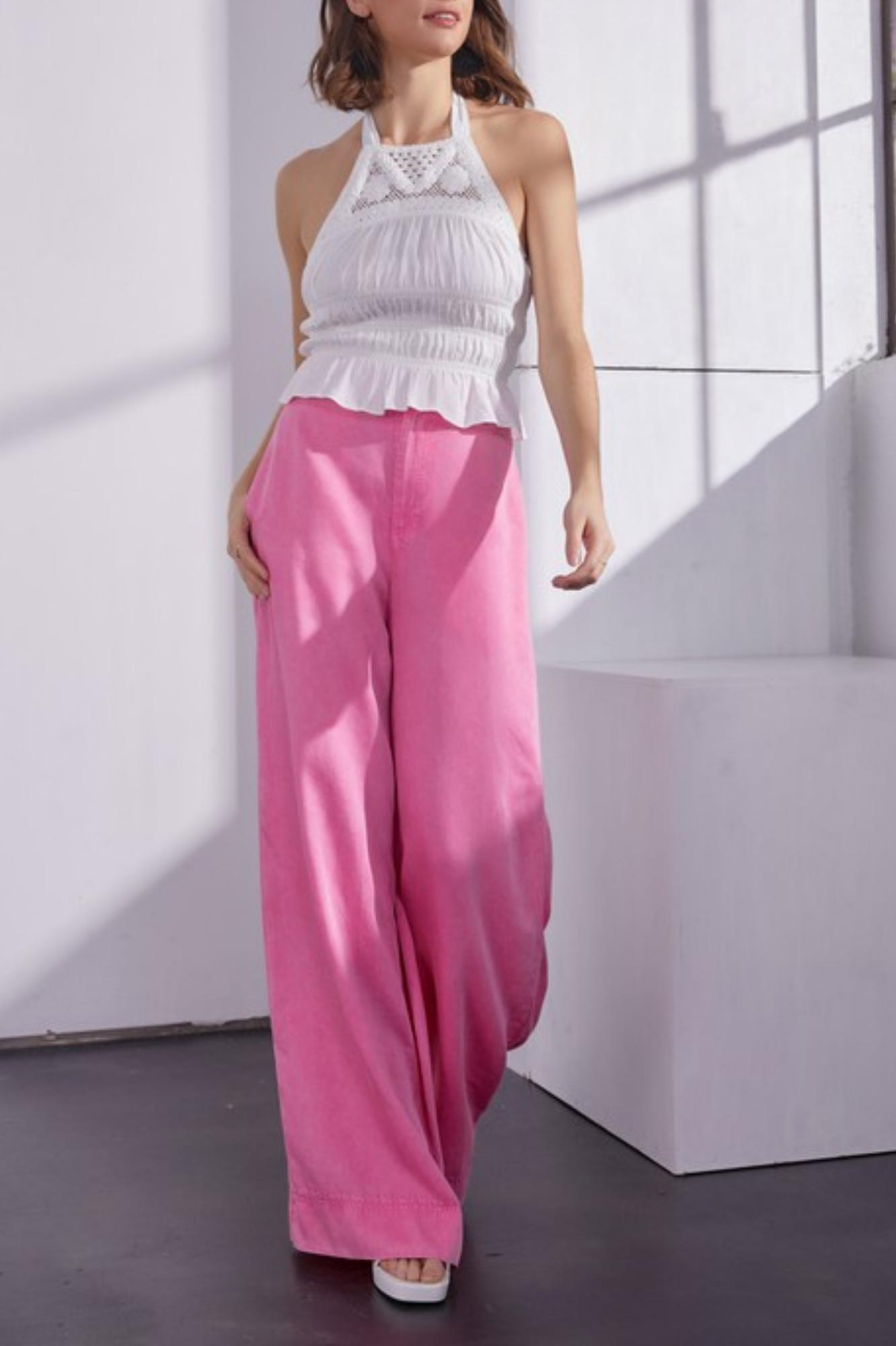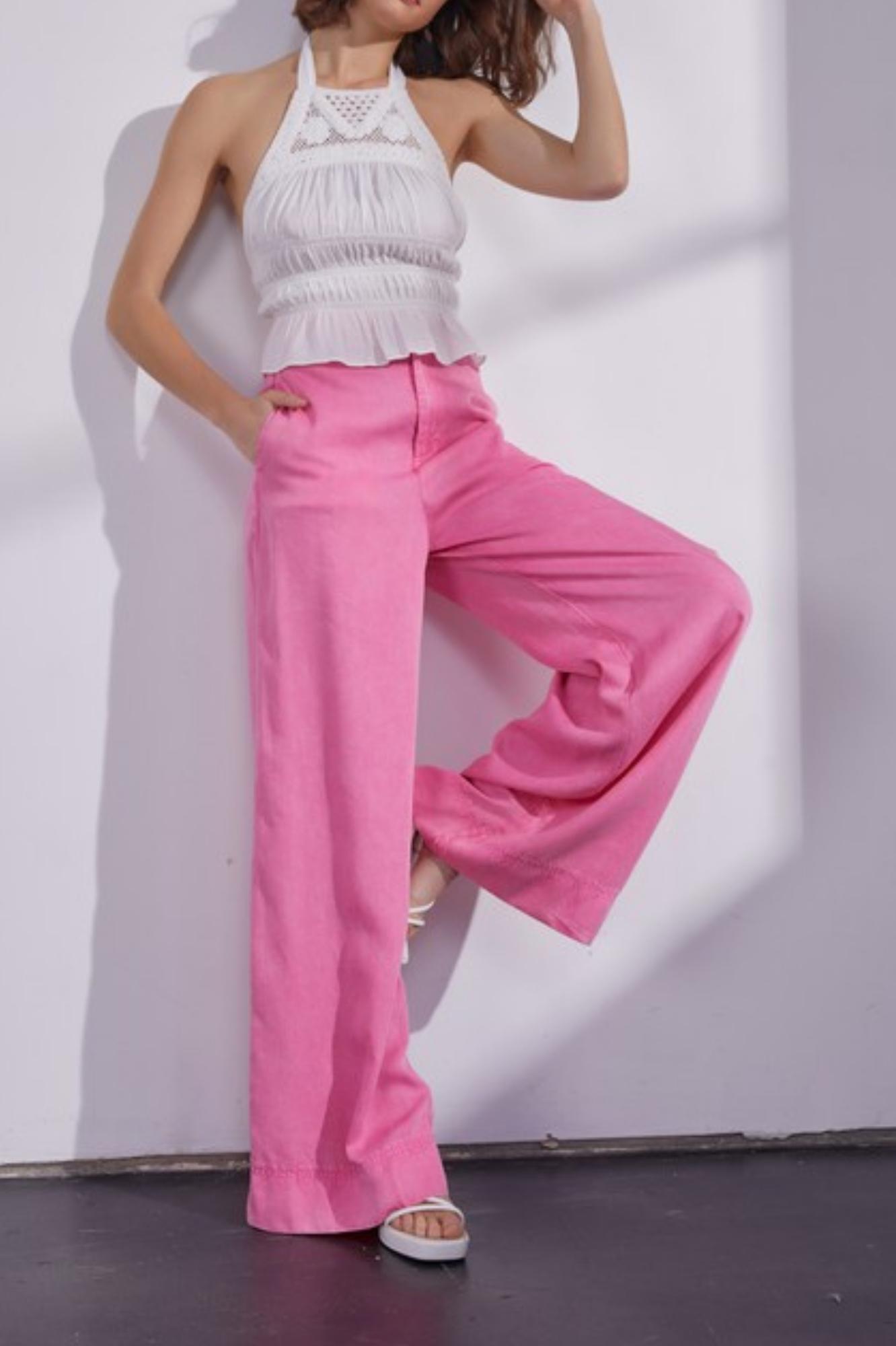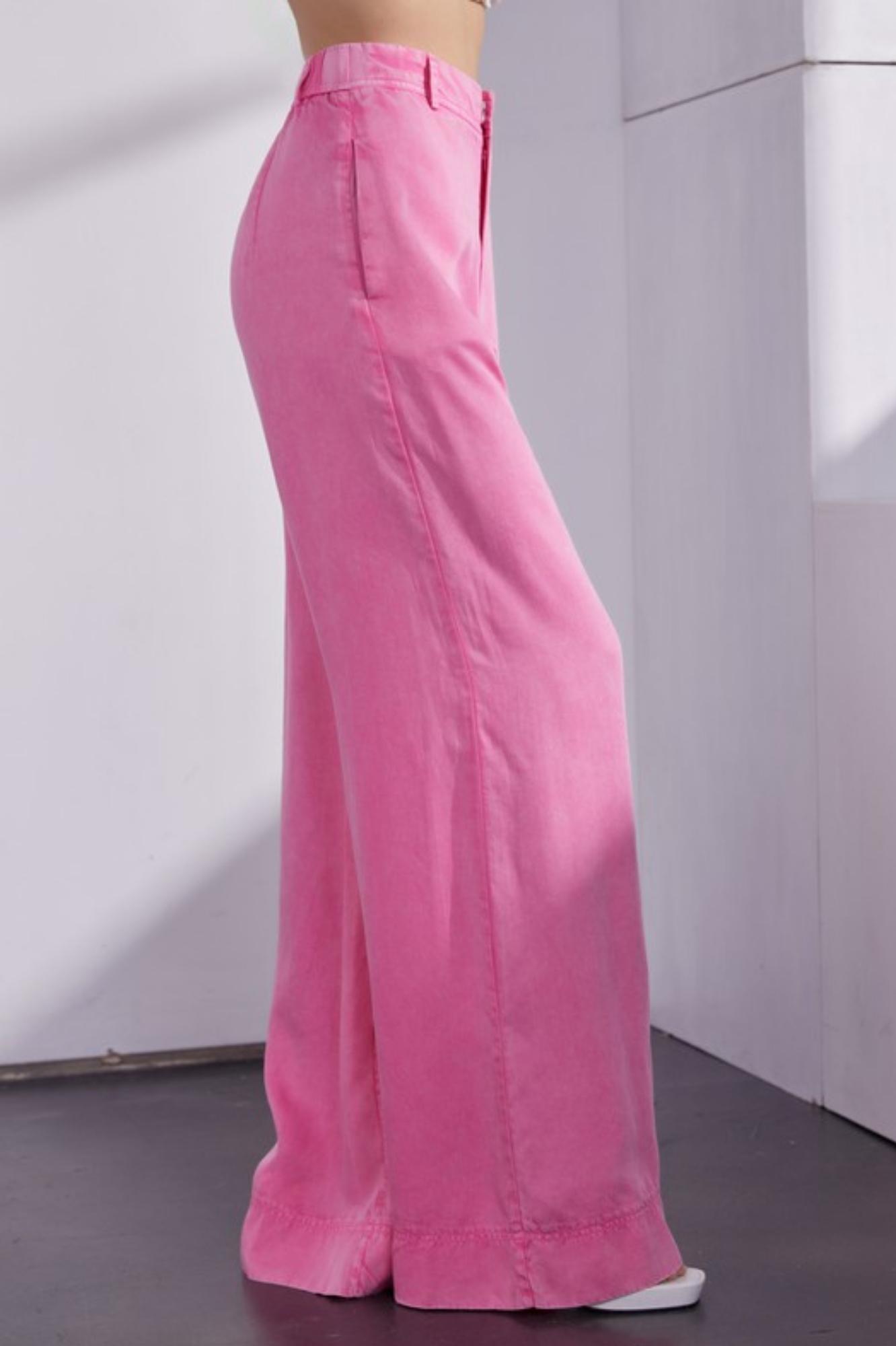 CANDY PINK ELASTIC HIGH WAIST WIDE LEG PANTS