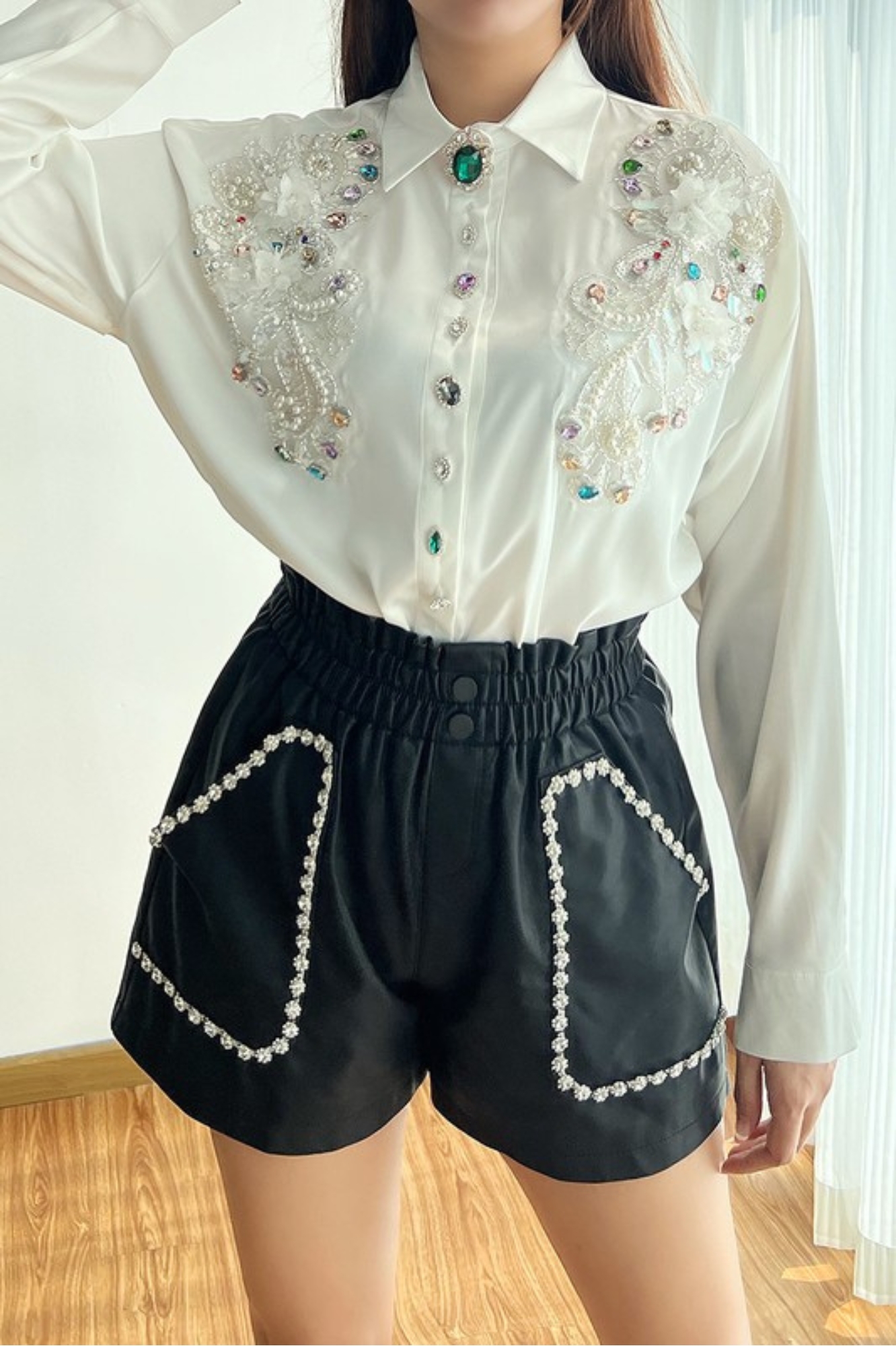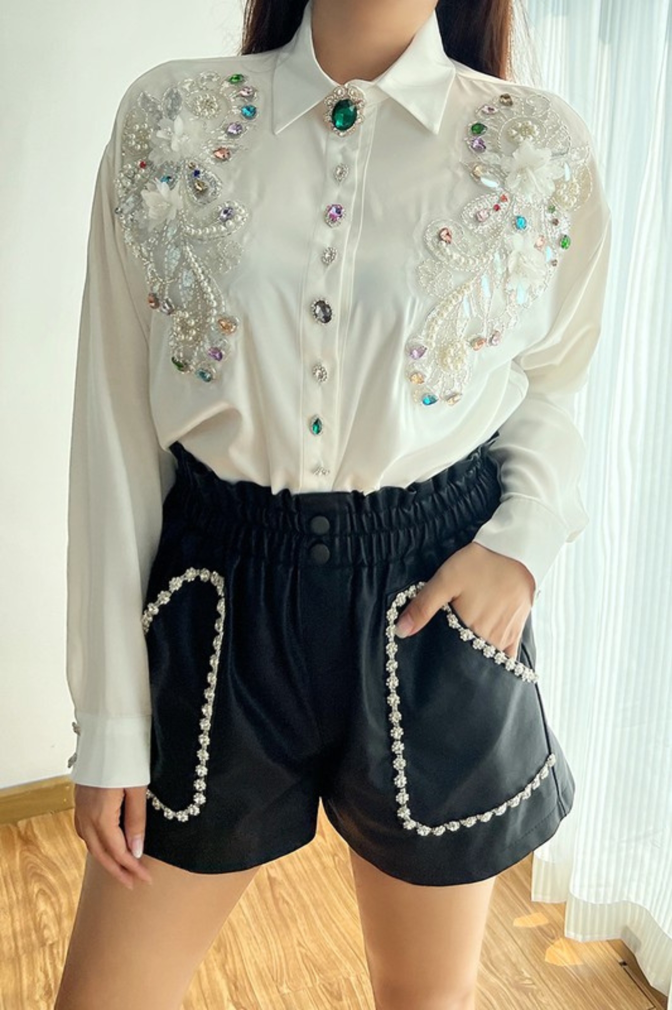 CRYSTAL EMBELLISHED BOHEMIAN SHIRT