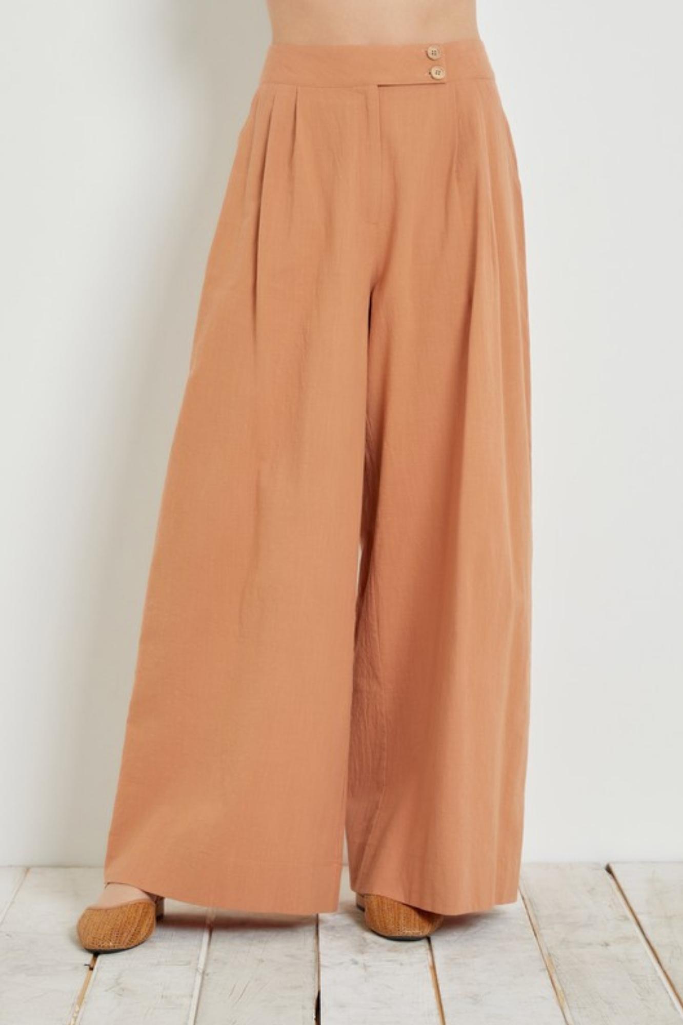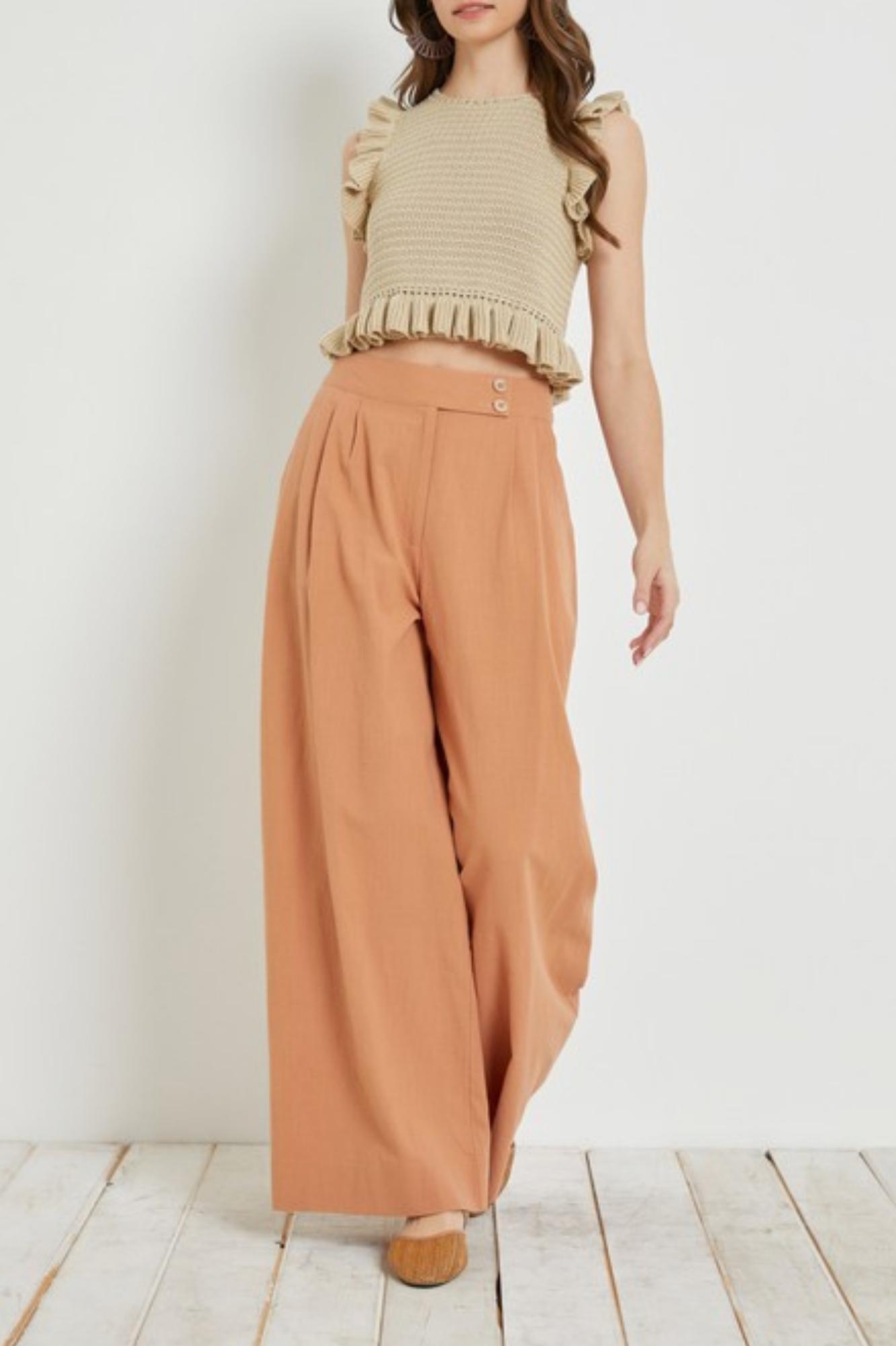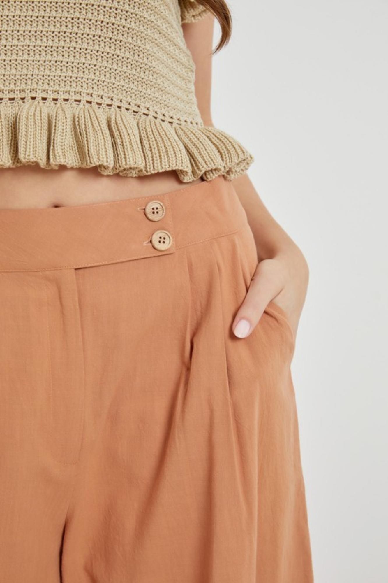 LT BEIGE OVERLAP WAIST CRINKLED PANTS