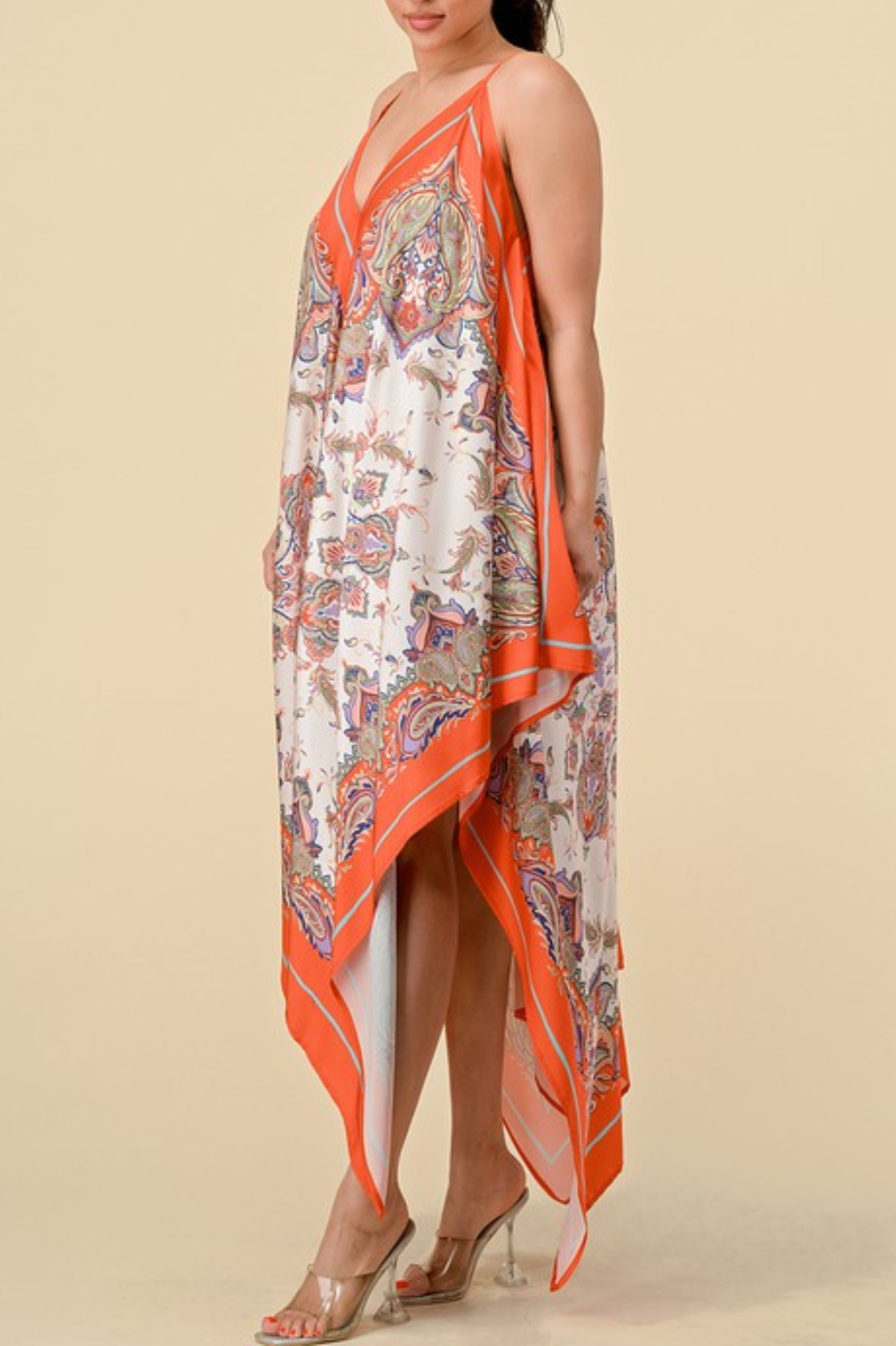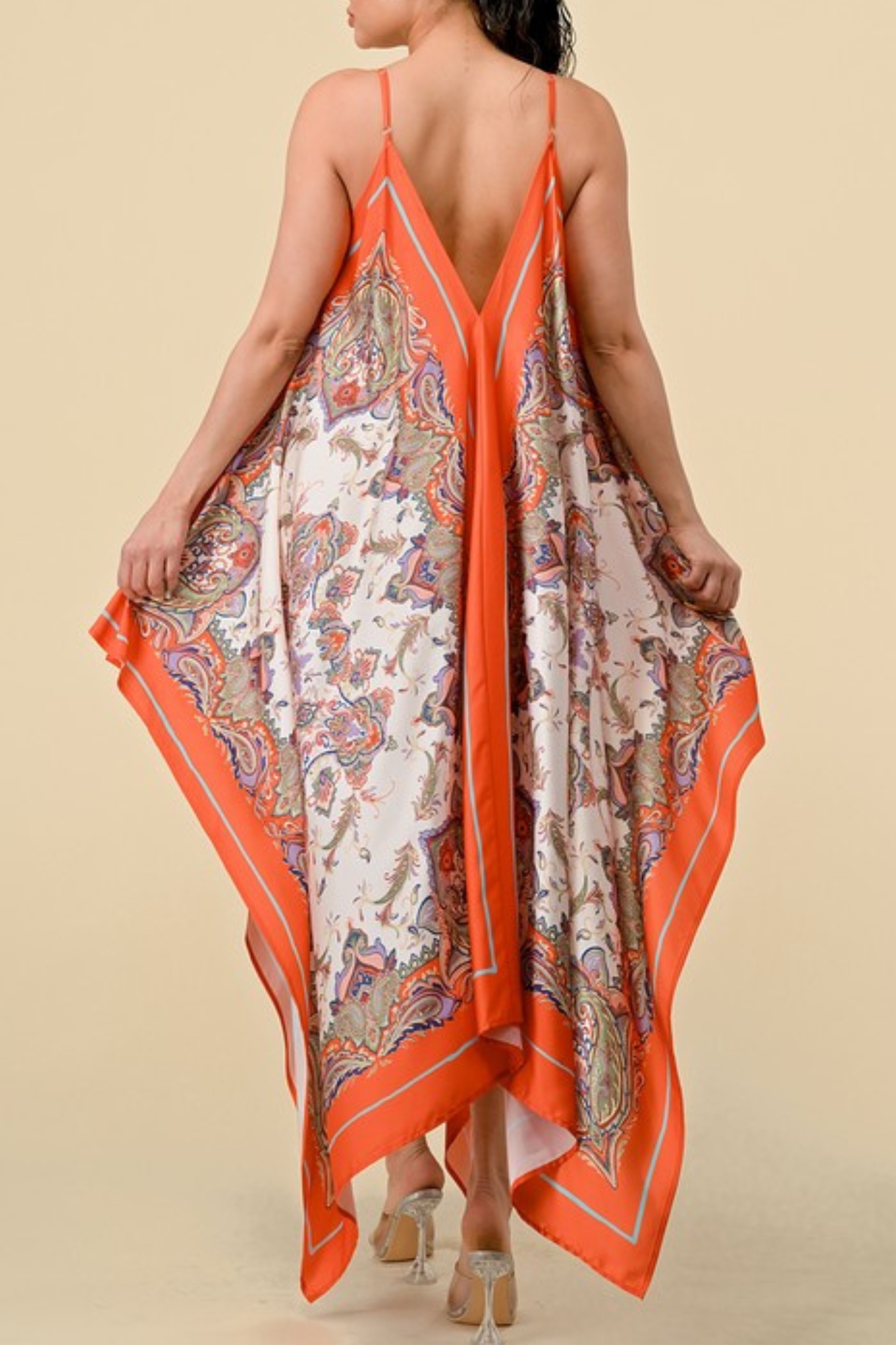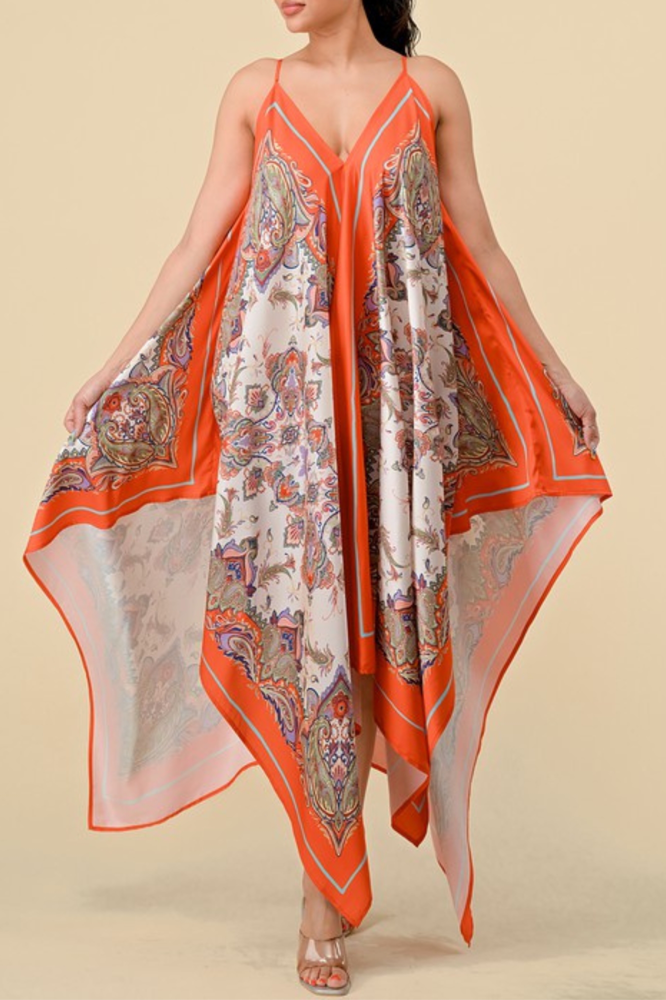 ORANGE COMBO SCARF BORDER PRINT SLEEVELESS DRESS