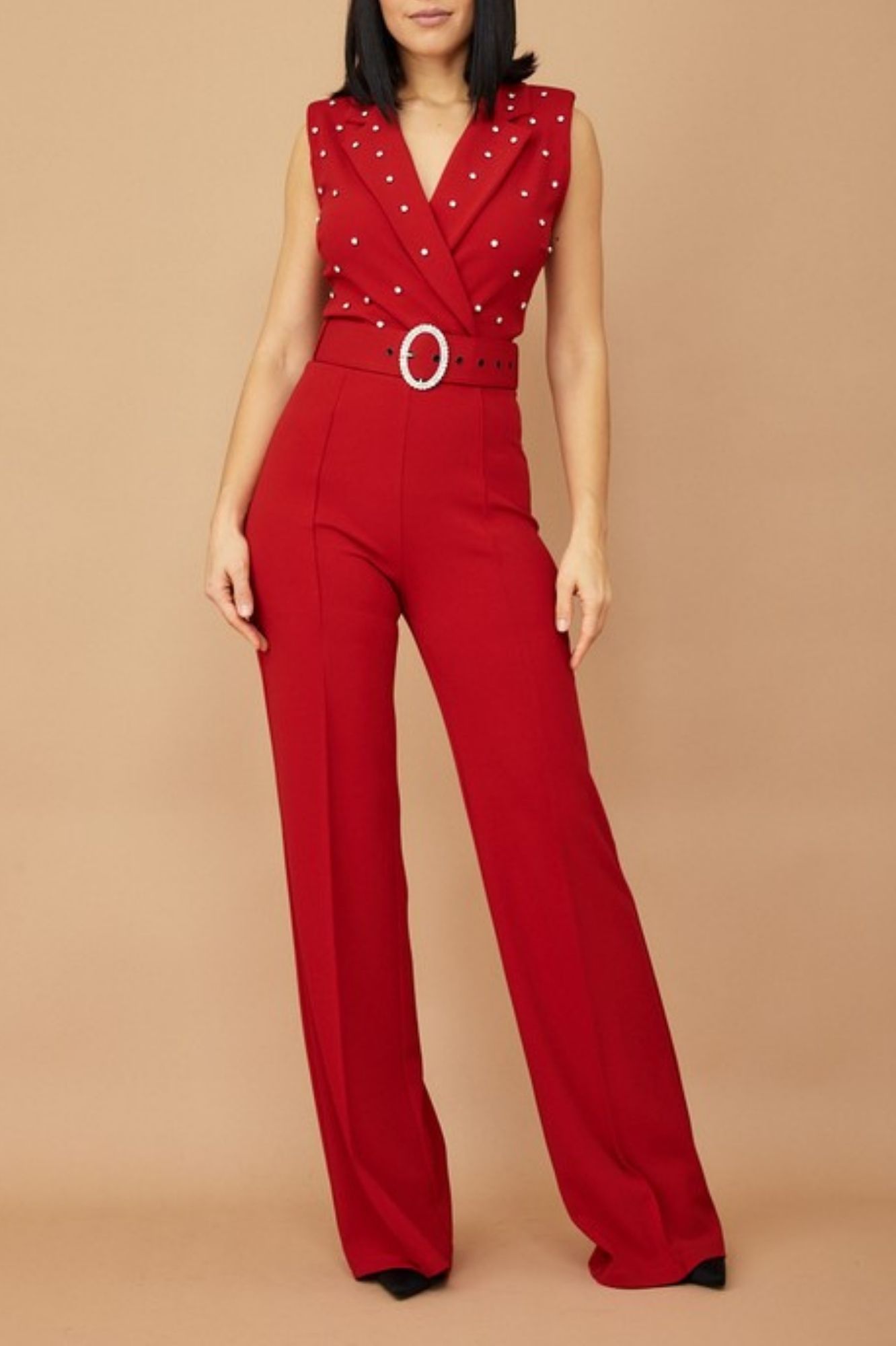RED JEWEL STUD DETAILED FASHION JUMPSUIT