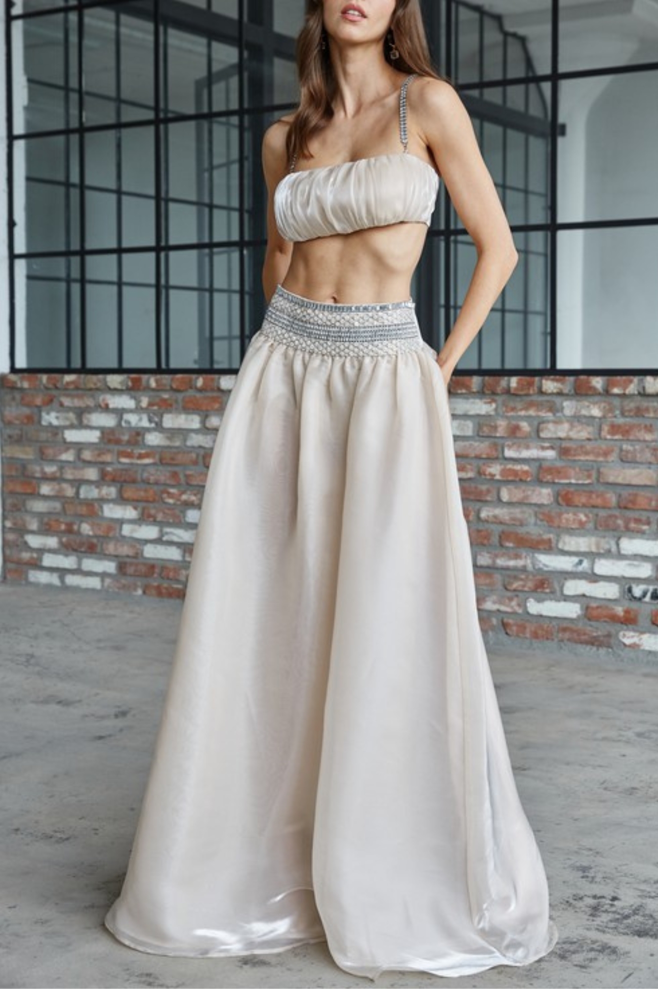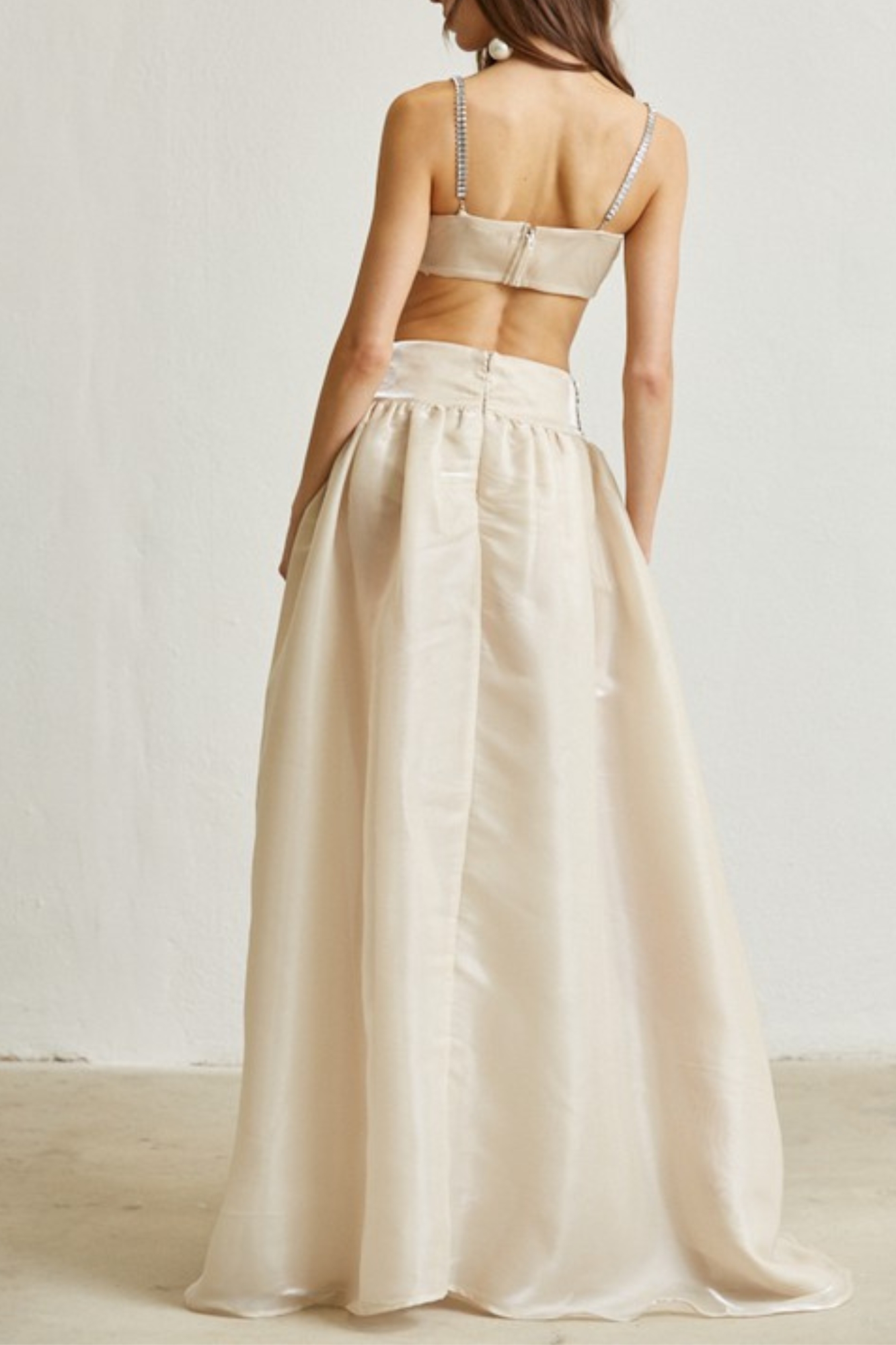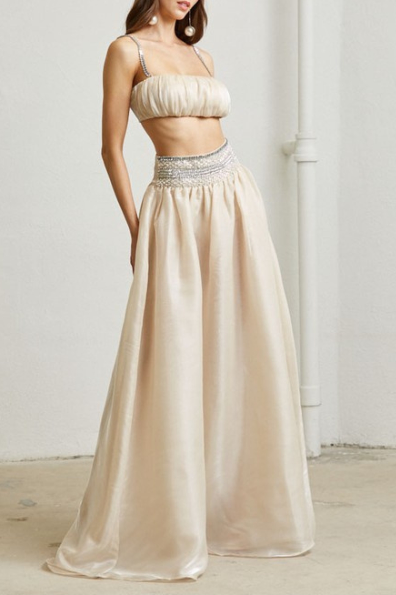 RHINESTONE DETAIL ORGANZA TOP AND SKIRT SET