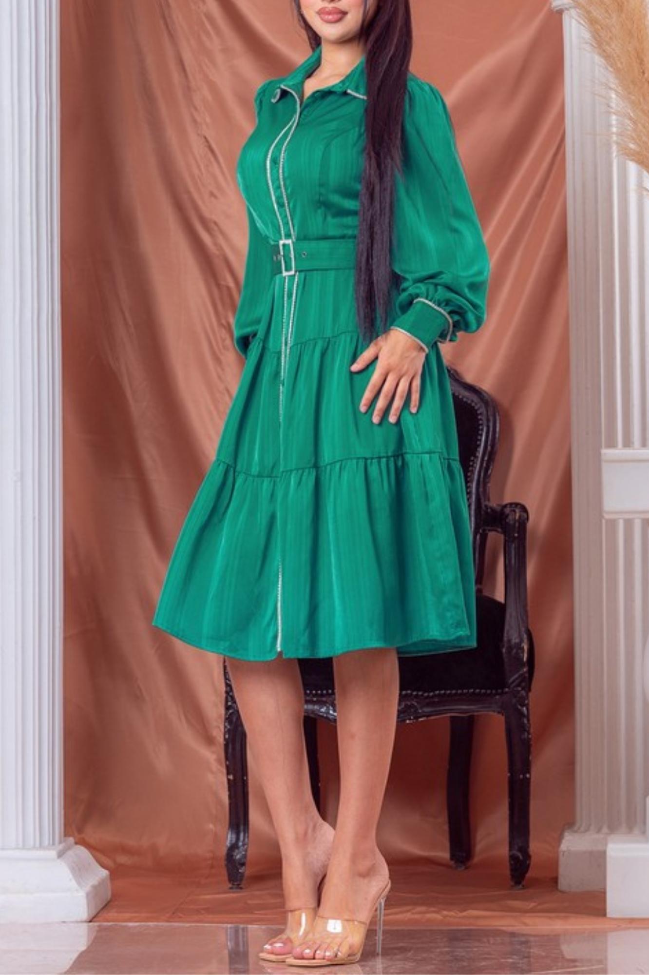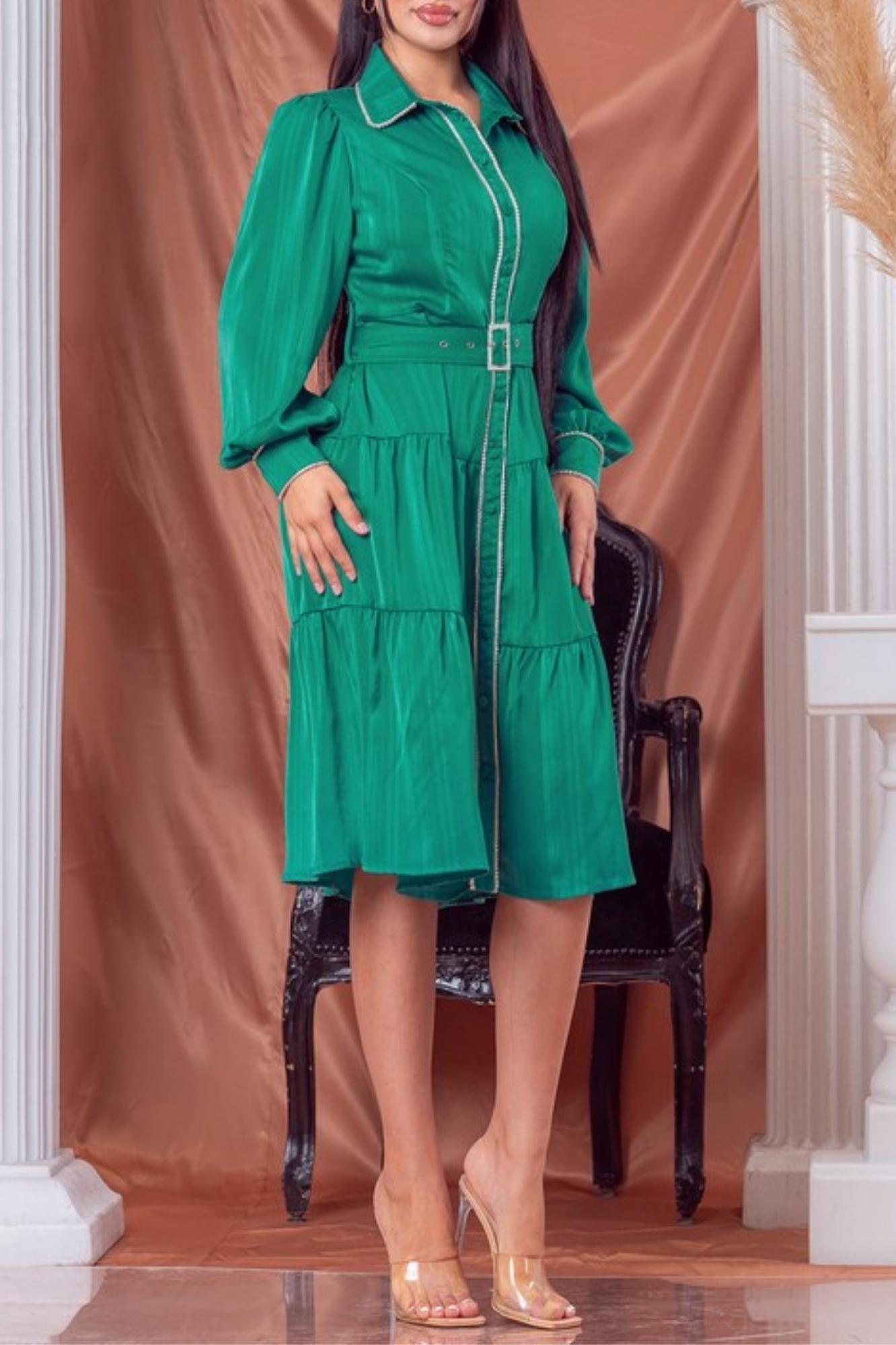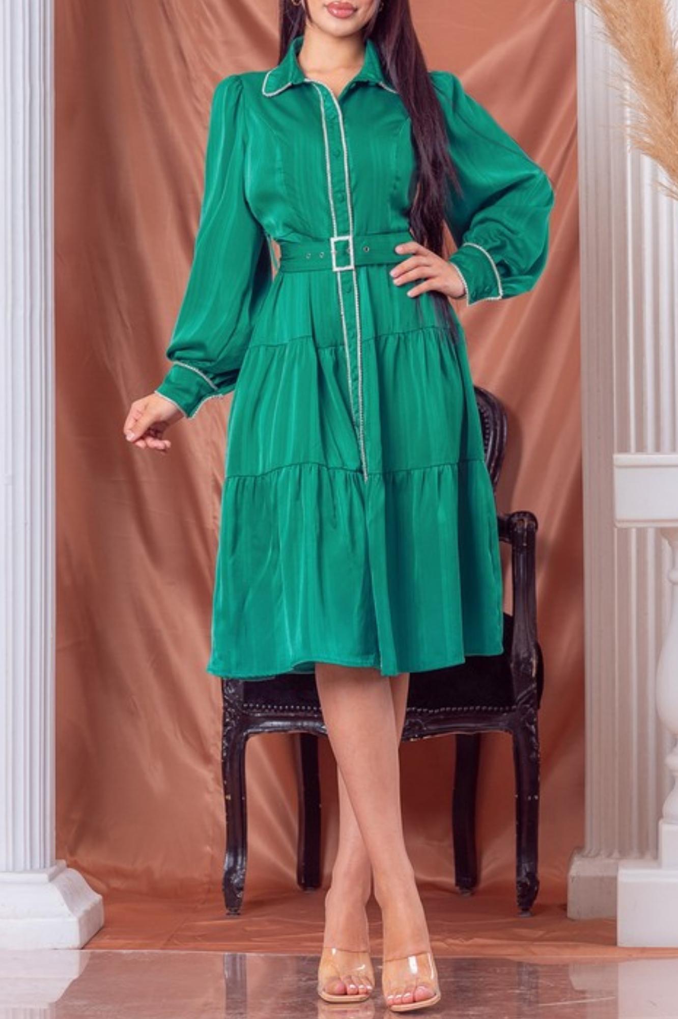 RHINESTONE NECK COLLAR & PLACKET BUTTON DOWN DRESS
