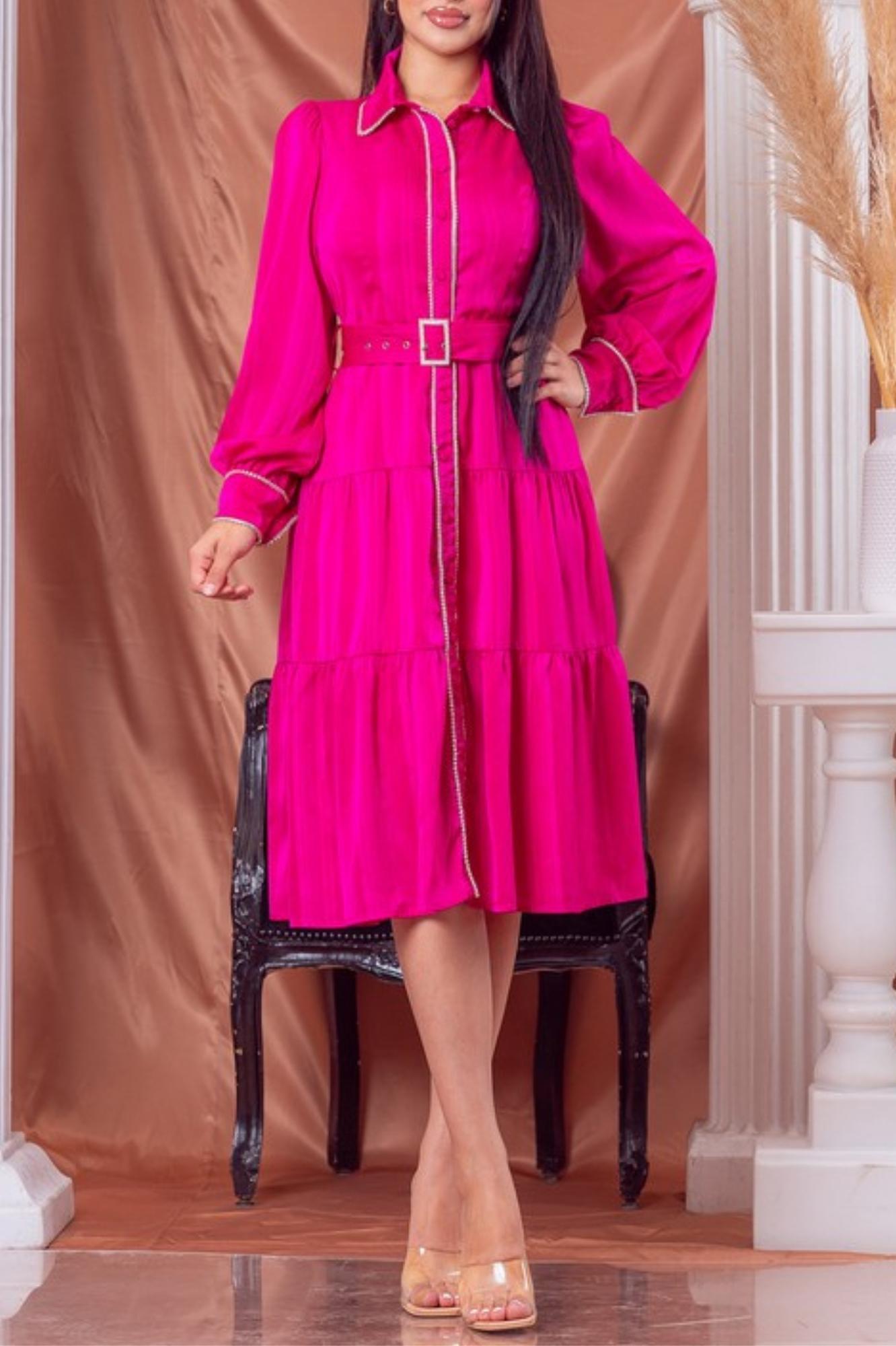 RHINESTONE NECK COLLAR & PLACKET BUTTON DOWN DRESS