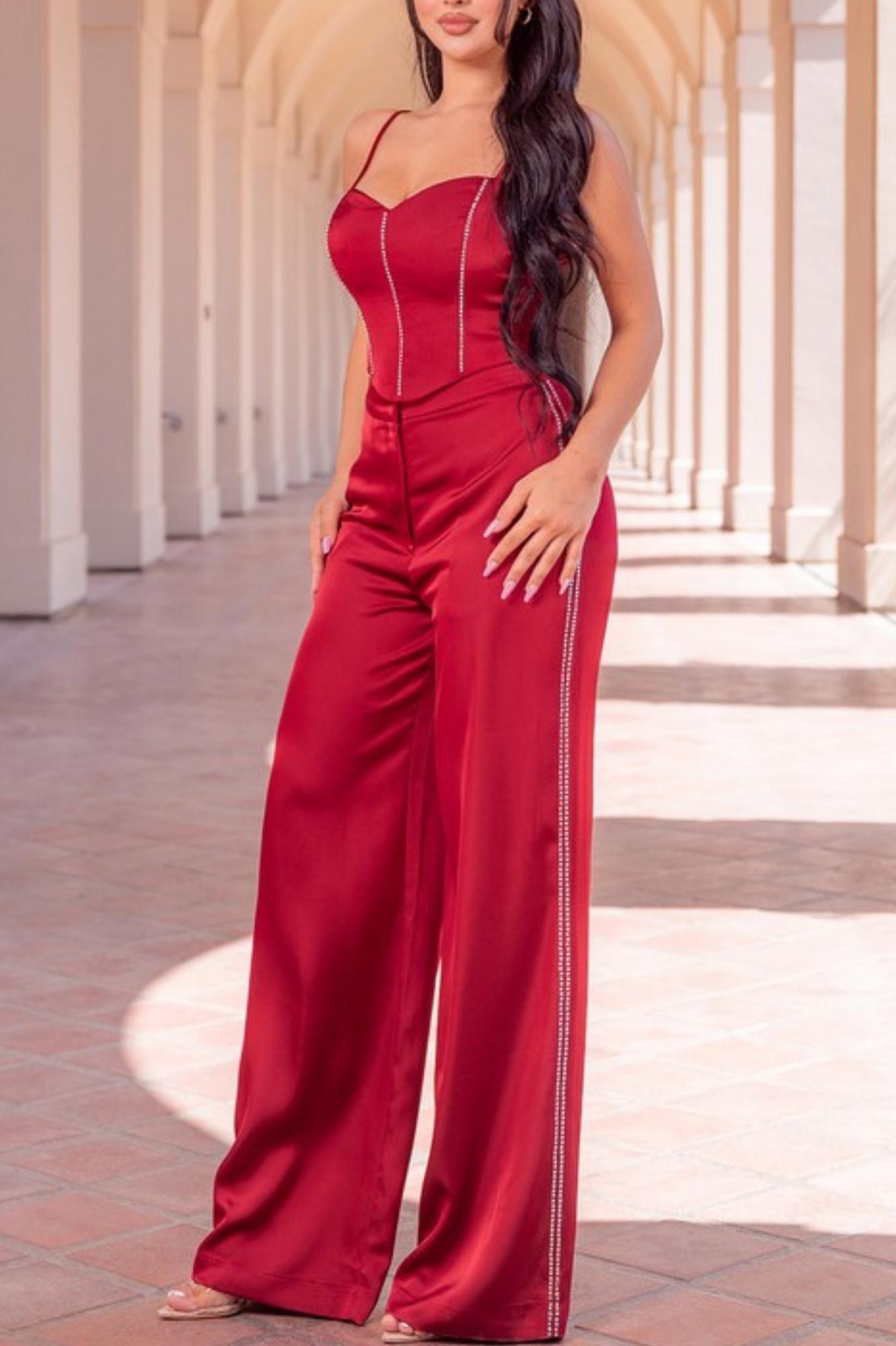 SATIN HOTFIX SLVLESS TOP W/ PANTS SET