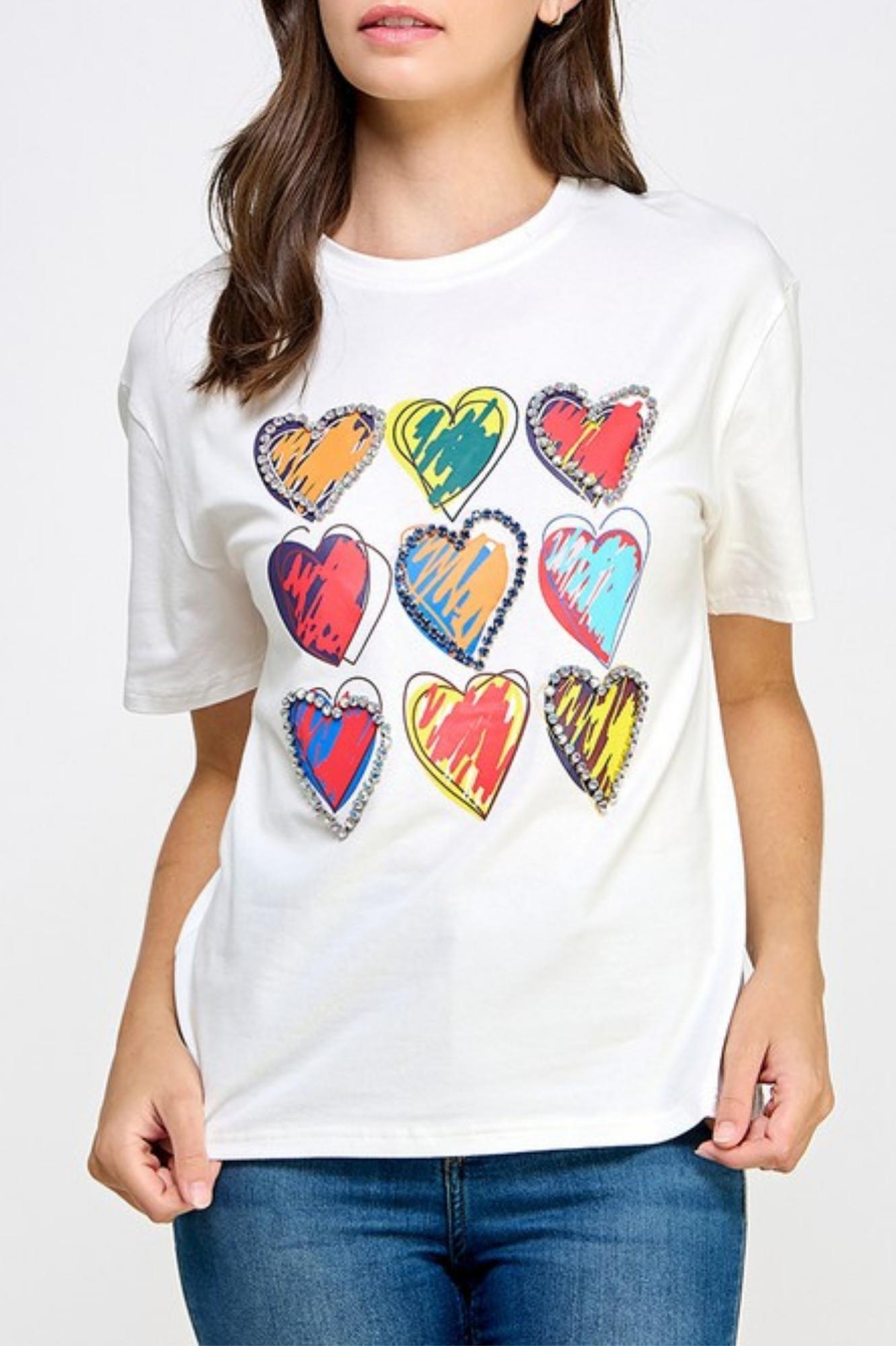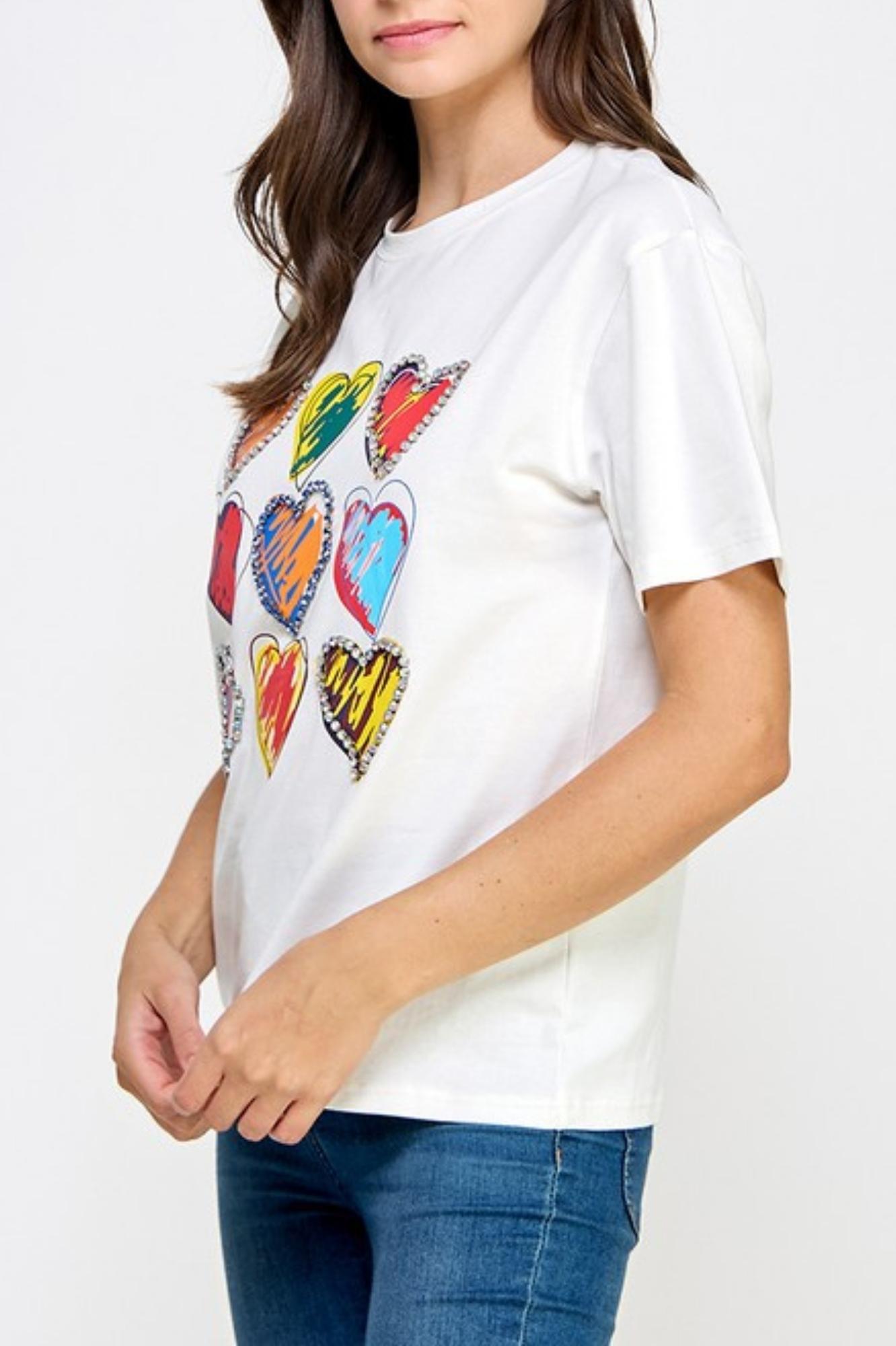 SHORT SLV RHINESTONE DETAIL R NECK GRAPHIC T SHIRT