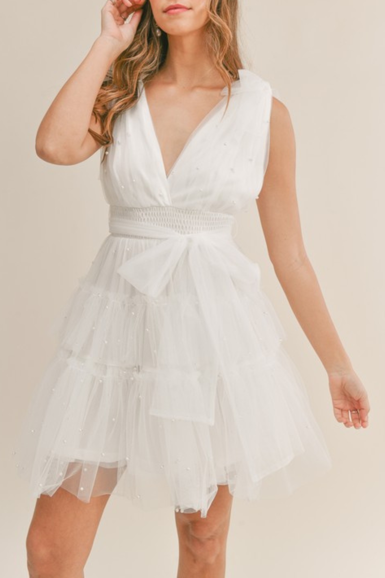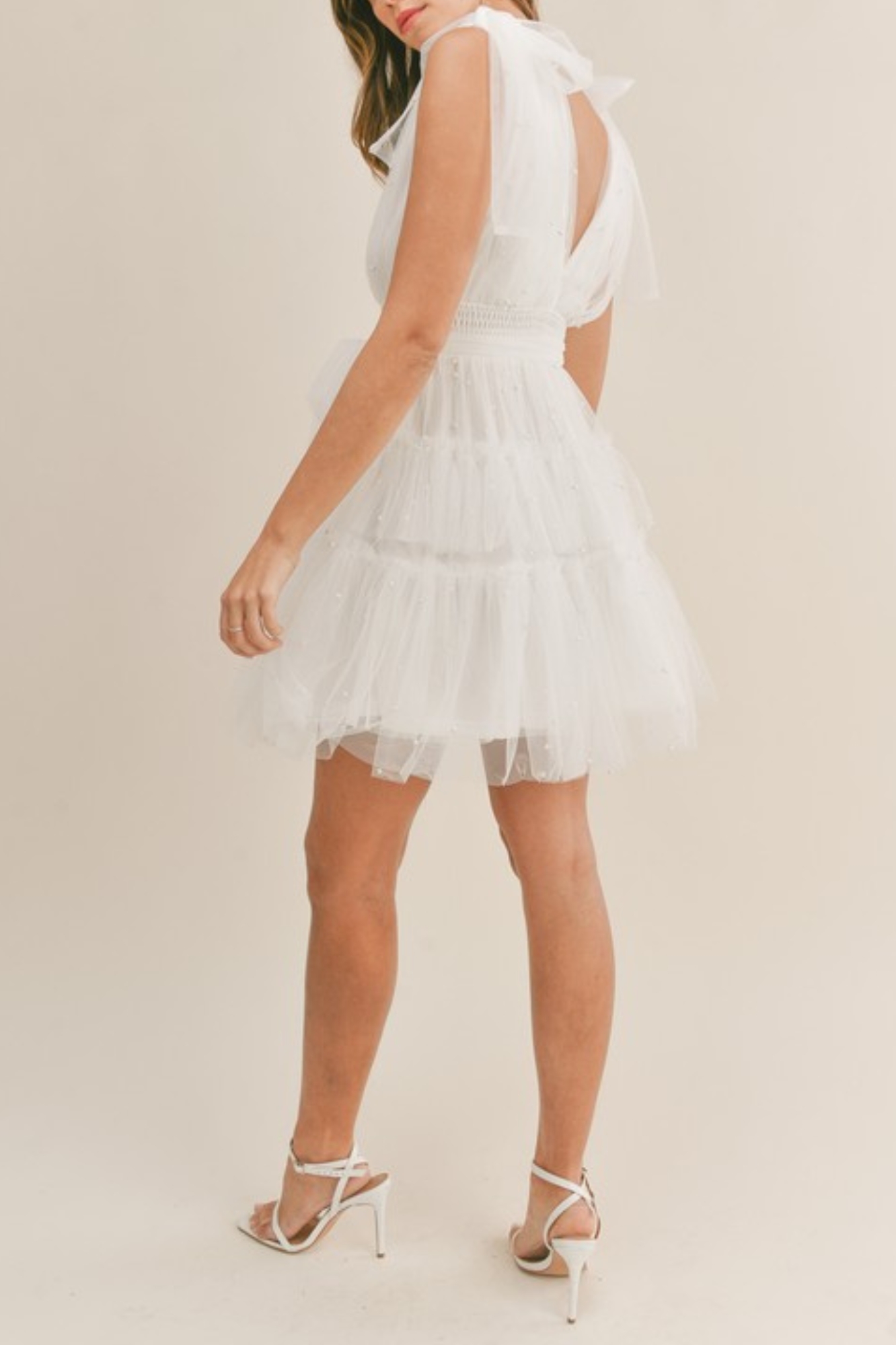 SWISS DOT MESH TULLE TIERED MINI DRESS