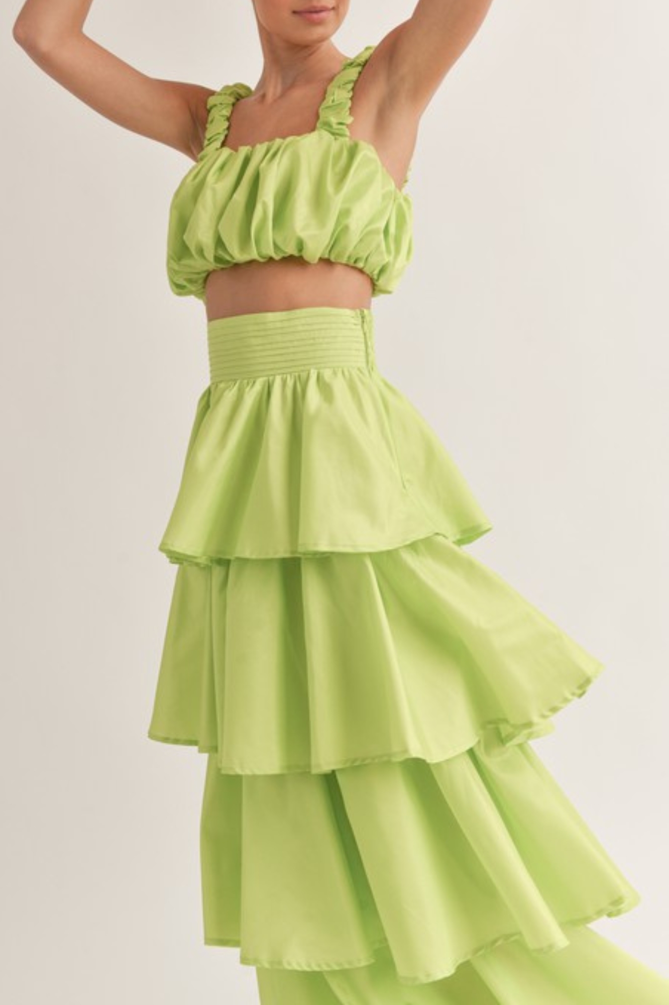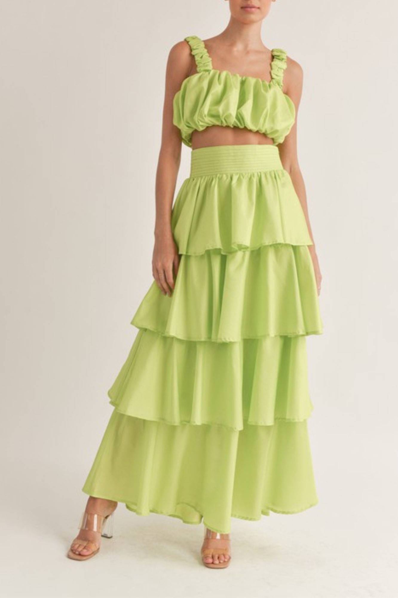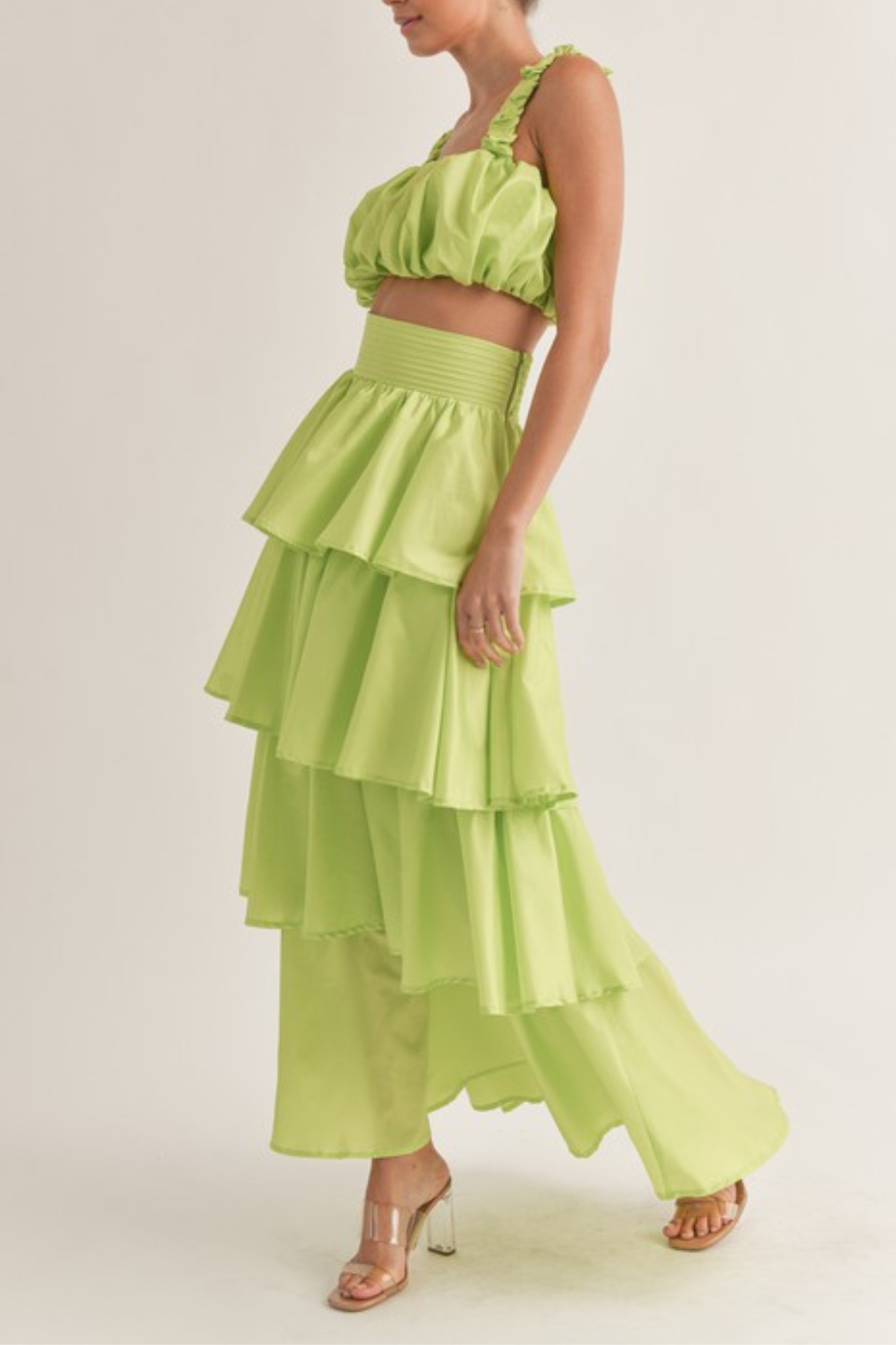 TIERED RUFFLED MAXI SKIRT AND CROP TOP SET