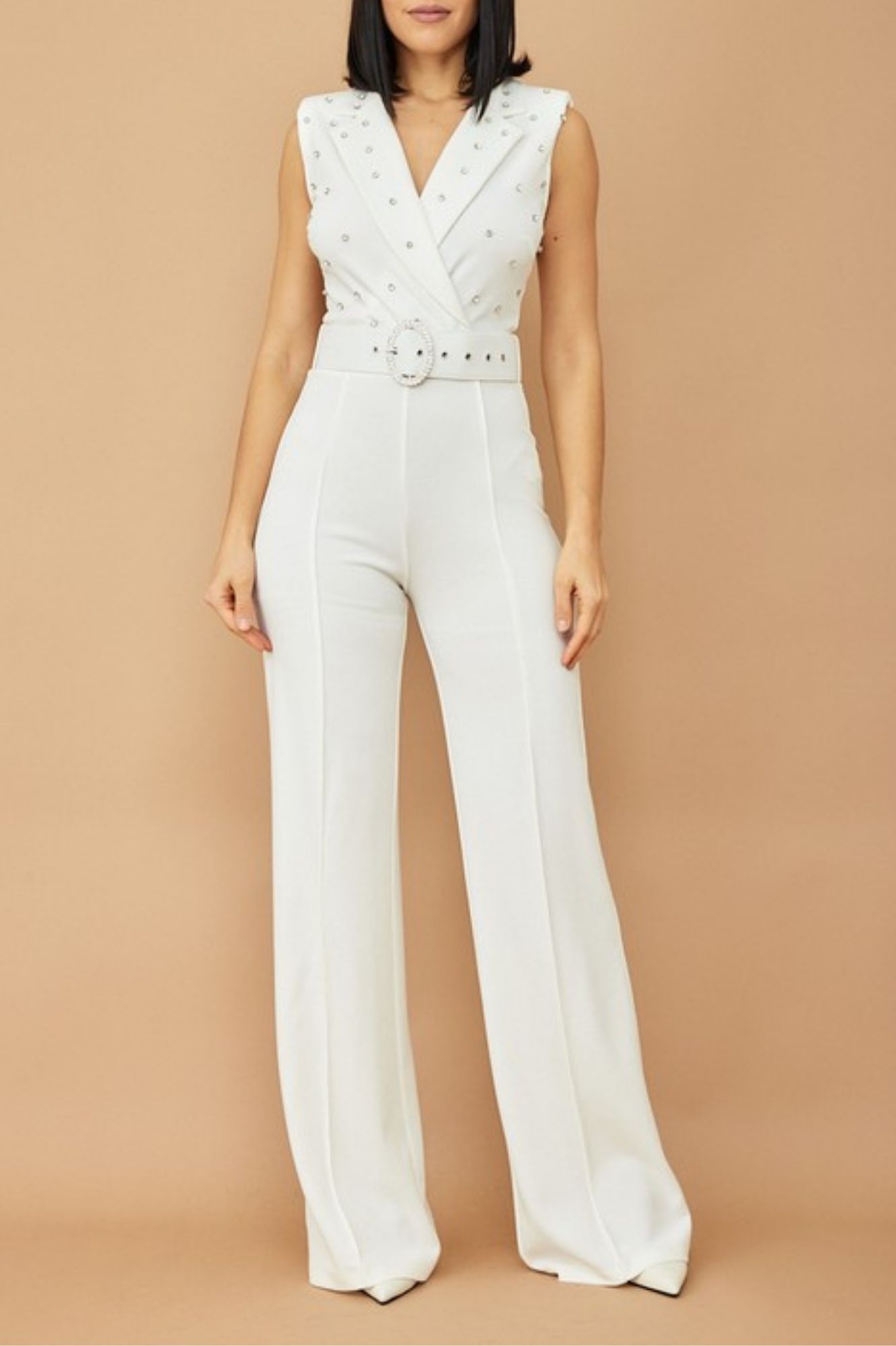 WHITE JEWEL STUD DETAILED FASHION JUMPSUIT